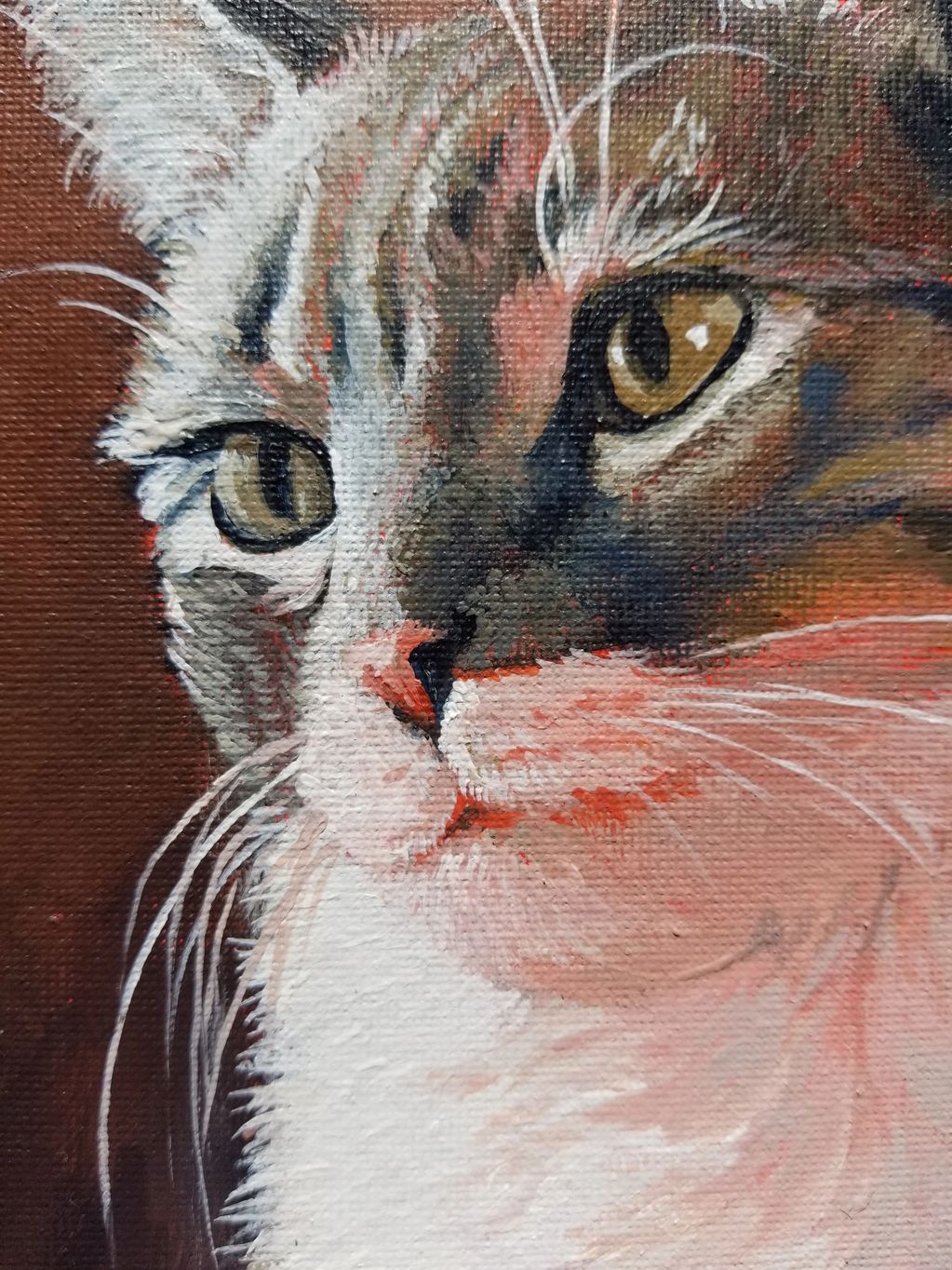This close up detail really shows how I left some of the red background to show through. It gives depth ties the painting together well.