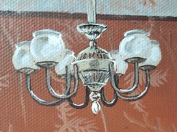 Above is a close-up of the chandelier! I love painting lighting. Shiny glass and metal with soft glow of light is very fun to draw and paint.