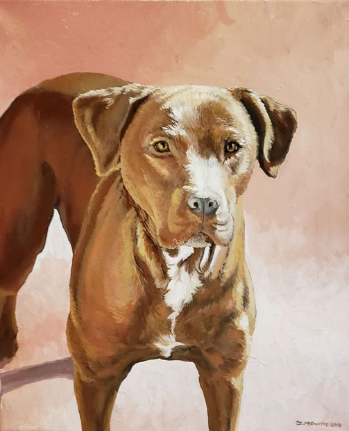 Painting peoples pets is very interesting and fun to paint! Every dog has different hair texture in different areas. For instance, some dogs have very short, soft thin hair like a pitbull's nose. Other's have fluffy fuzzy hair, or short bristle like hair. All are very different painting techniques.